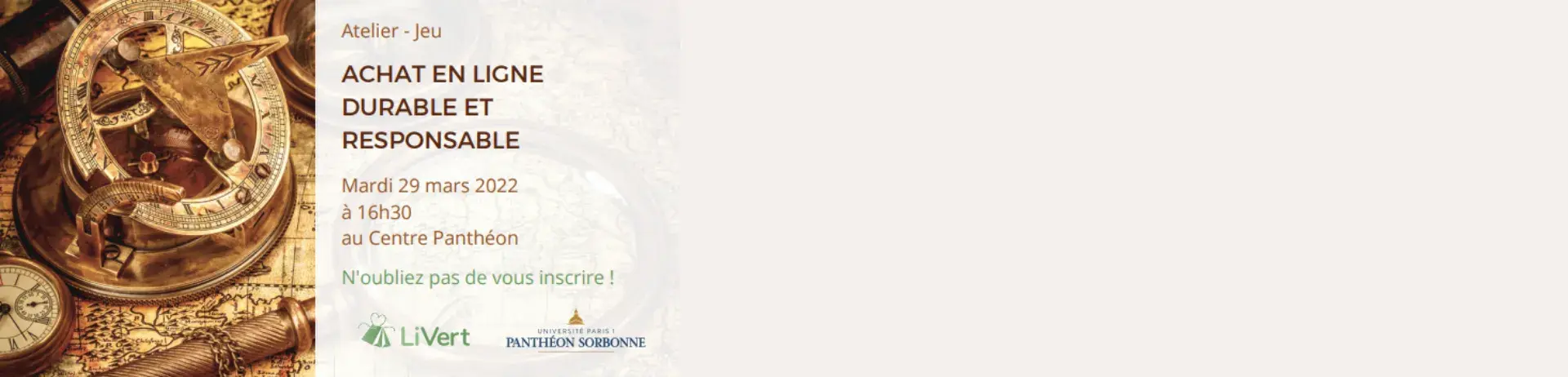 Au travers de différents mini-jeux, sous le thème d’une chasse au trésor, les étudiants en apprendront plus sur l’impact environnemental de nos modes de consommation actuels, et pourront se familiariser avec une nouvelle manière de commander en ligne en groupant leurs achats grâce à Li’Vert. L’évènement comprendra une présentation de l’entreprise, plusieurs jeux ainsi qu’une remise de prix pour les gagnants, suivie d’un moment convivial avec notre équipe autour d’une collation.